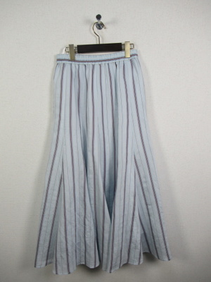 裾の方に生地分量が多くなるフレア他イプ ウエストゴム 裏地有り 脇ポケットあり 手洗い可能 色によってストライプの柄が違います