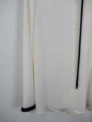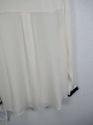 とろみの生地で落ち感があるきれいなブラウス 黒のリボンは襟に縫い付けてます 袖口にも同じテープ