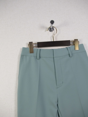 綿に見えるポリエステル素材 裏地無し センターライン入 前ファスナーパンツ 手洗い可能