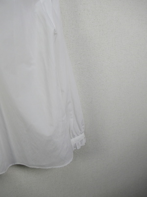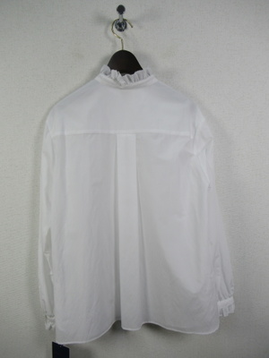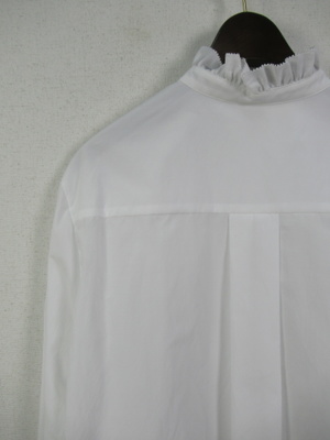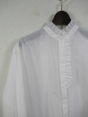スタンドカラー フリル襟と袖口 比翼ボタン 手洗い可能