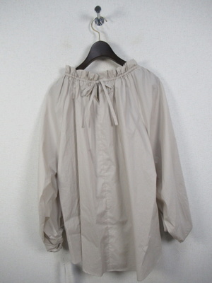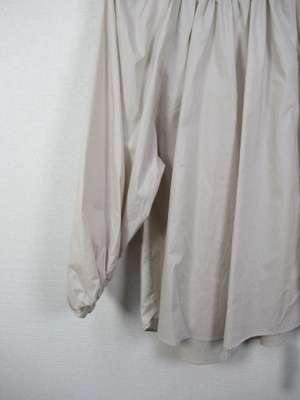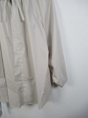 全体のボリューミーなデザイン 襟ぐりは紐調整で絞りができ後ろリボン 袖口もボリュームあり(ゴム入り) 前上がり 手洗い可能