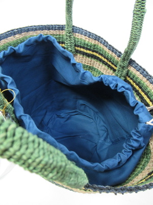 アパカ素材 色違いで編み込んでバケツ状に・・うち側青い布の巾着袋付き(税込取り外し可能
