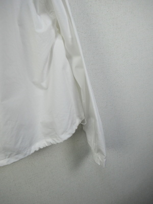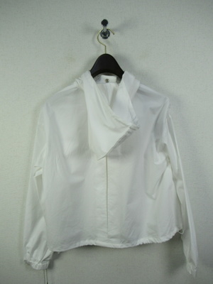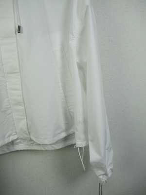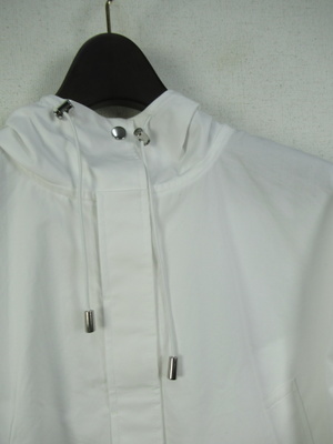しゃきっとした生地なのでアウターには適してます 短丈のフード襟 前開き(比翼ボタン) 裾は絞り調整できる 袖口ゴム入り 裏地無し