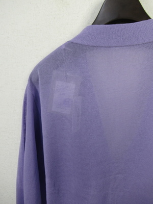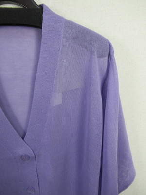 やや丈長カーディガン、前ボタン、透け感のある生地、手洗い可能