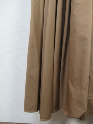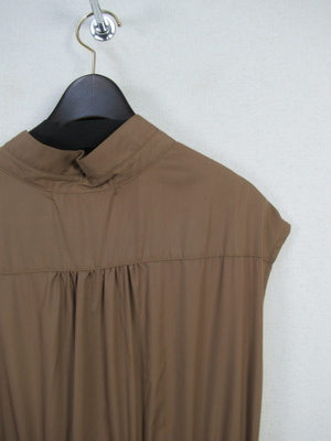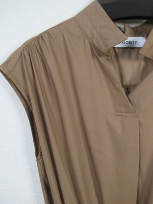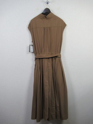 プルオーバーのシャツワンピース 襟はスタンド フレンチ袖 フロントスキッパー襟 ウエスト総ゴムギャザースカート スカート部分は裏地付き 共生地のリボン生地脇ポケット 手洗い可能