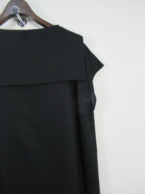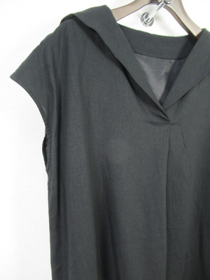 かぶりタイプロングワンピース 胸元V開きでタック入り 襟はセーラー襟 フレンチスリーブ 総裏付き 手洗い可能