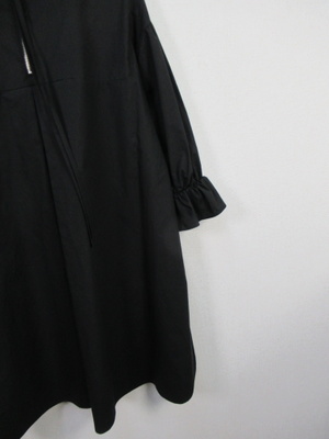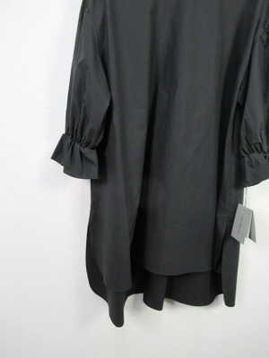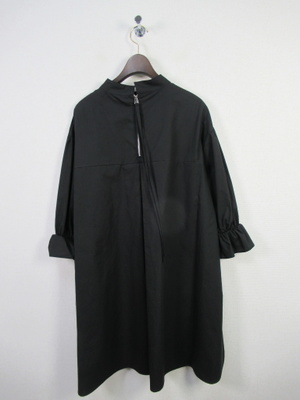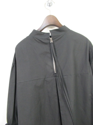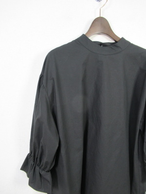 チュニック丈のブラウス ネックはスタンド ドロップショルダー 袖ゴムギャザー 後ろファスナー 手洗い可能