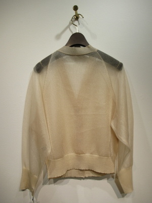 透け感のあるニット ラメ入りで光沢感あり Vカーデ長袖 ゴールドのボタン 手洗い可能