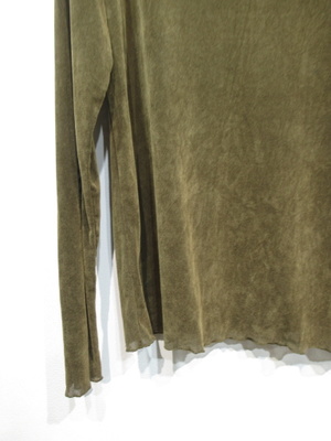 ベロア風のメッシュ生地、インナー、ボトルネック、袖口と襟ぐりと裾がメロー仕上げ、手洗い可能