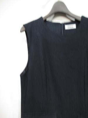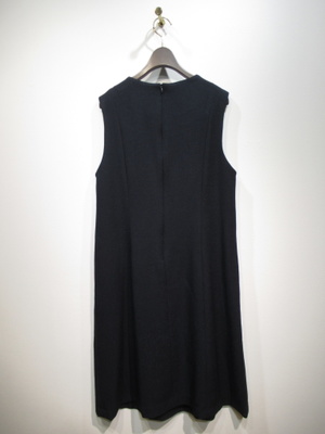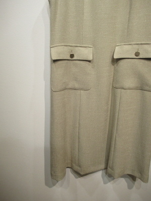 ジャンパースカートワンピース、後ろファスナー、裏地付き、フロントにフラップポケットあり(ボタン付き)、手洗い可能
