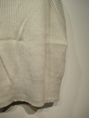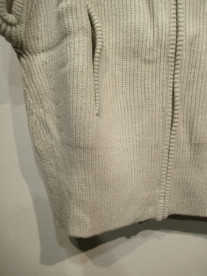 畦編み ざっくりタイプのニットベスト ゴールドのファスナー(襟まで閉じれます)袖はドロップして二の腕のあたりから腕が出るようなシルエット ポケット有り