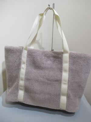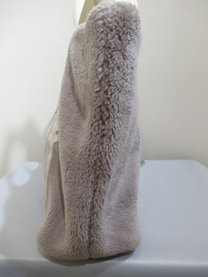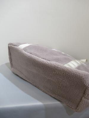 フェイクファーのトートバッグ グログランテープの持ち手 中央にマグネットで留める 内ポケット有り ロゴ・イラスト