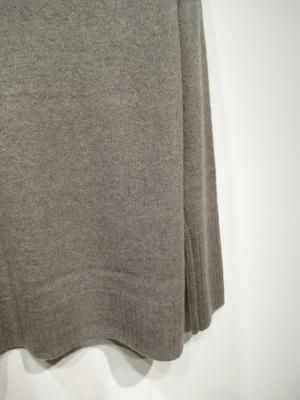 ハイネック ドロップショルダー 裾はフロントアーチ ネック、袖口 裾はリブ編み