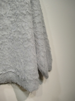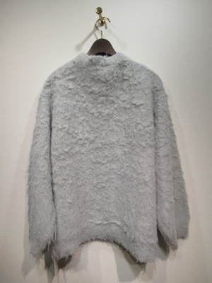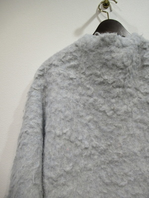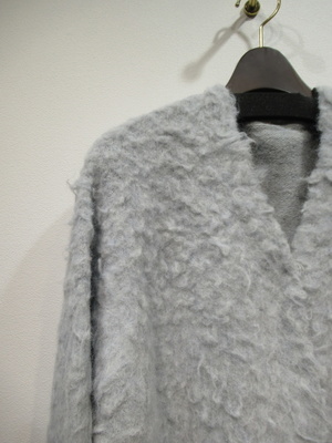 圧縮ウールにシャギーのような生地の表面 Vネックのカーデ(ホック) ドロップショルダーで少しざっくりデザイン 手洗い可能