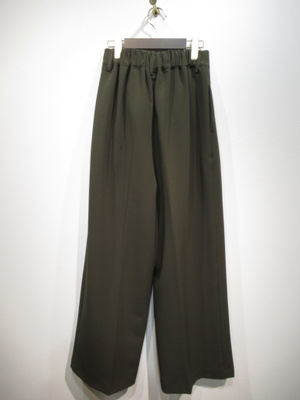 フロント2タック入り ストレートワイドパンツ 裏地無し フロントファスナー ウエスト後ろギャザーゴム 脇ポケット