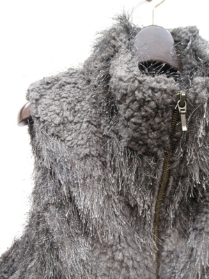 シャギーファーベスト シャギーとボアのドッキング 前ファスナー ポケット有り 裾ドロスト 手洗い可能