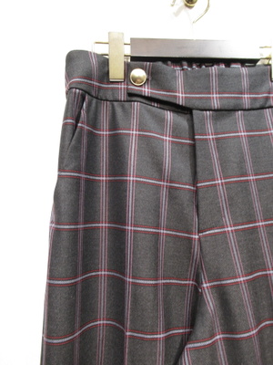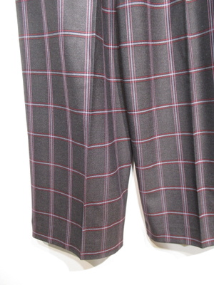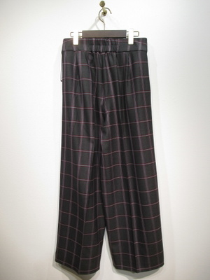 マドラスチェック柄 ソフトワイド フロントファスナー ウエスト後ろギャザーゴム 裏地無し 手洗い可能