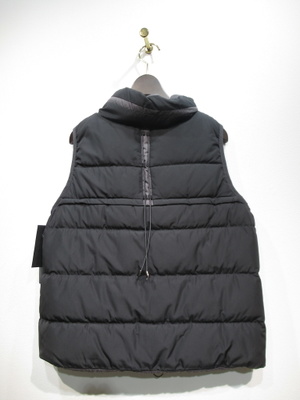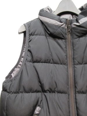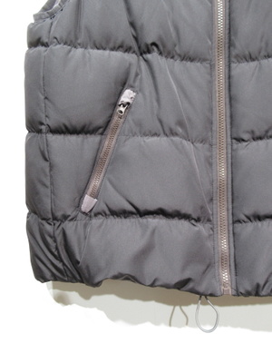 ダウンベスト、裾ドロスト、前ファスナー、後ろ飾りの紐あり