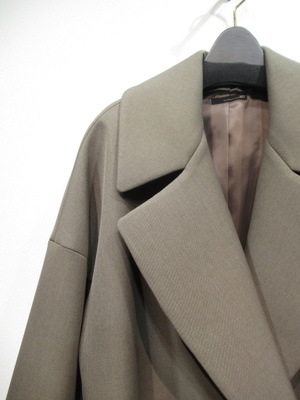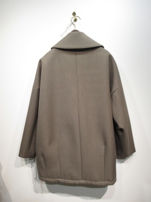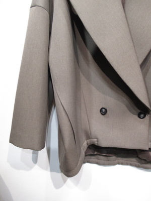 ソフト段ボール素材のビッグシルエットジャケットコート、ダブル合わせ、裏地あり、裾ゴム入り