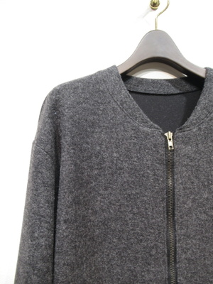 圧縮ウールのブルゾン、襟無し、前ファスナー