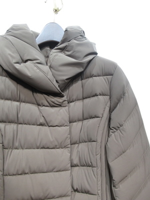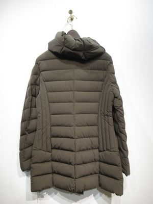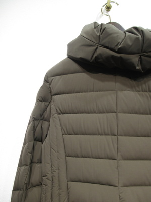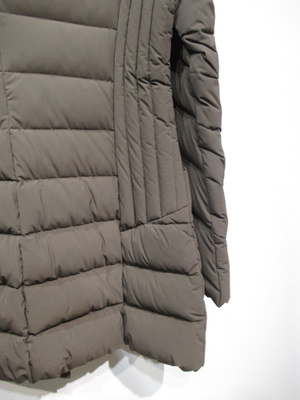 ヒップが隠れる長さのダウンコート フロントファスナーとボタン ストレッチ生地伸縮性あり