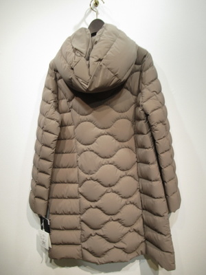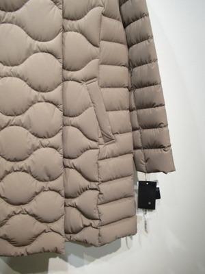 ヒップが隠れる長さのダウンコート フロントファスナーとボタン ストレッチ生地伸縮性あり