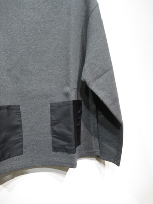 スクエアシルエットでドロップショルダー っ裾は前後差なし 襟ぐりとポケットはどちらの色も黒の異素材配色 手洗い可能 合わせるスカートあり(ID:118767)