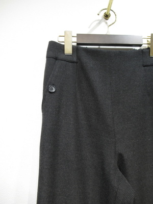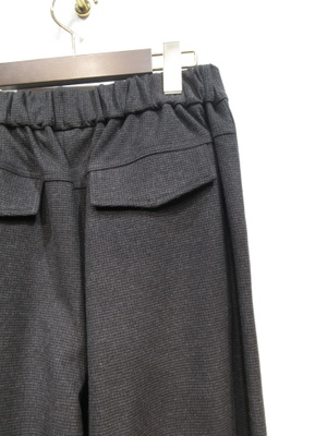 セミワイドパンツ、細かい千鳥柄、脇ポケット、裏地なし、手洗い可能、ウェスト後ろゴム
