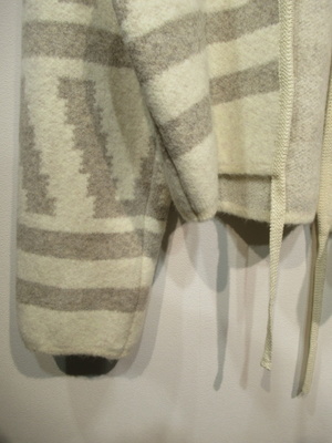 北欧ニットデザイン、前立てから延長で紐デザイン、着流し、ドロップショルダー