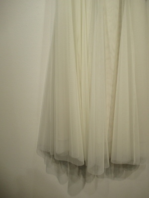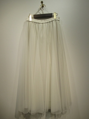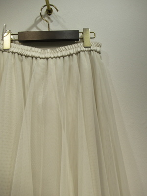 ※春物新作 ウエストギャザーゴム チュール2枚重ね 裏地はサテン地(裏地両サイドにスリット入り・23cm) 手洗い可能