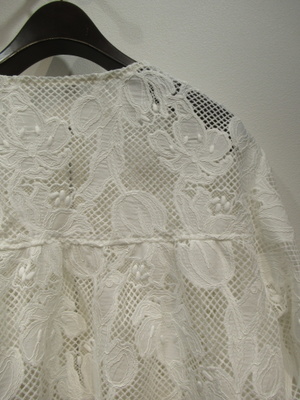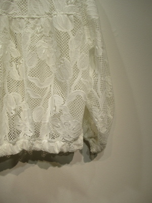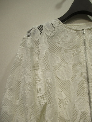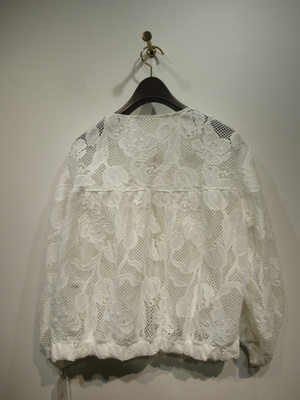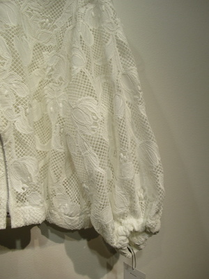 ※春物新作 ポリエステルレース生地のブルゾン 前ファスナー ドロップショルダー 袖口 裾ゴム入り 後ろ身頃切り替え ギャザーいり 手洗い可能
