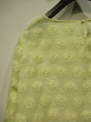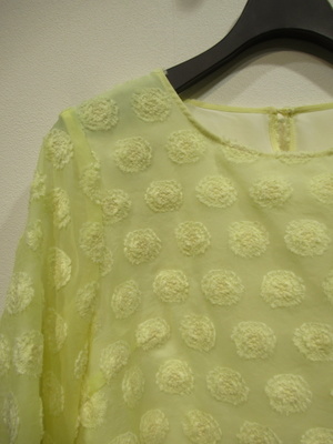 ※春物新作 フロッキー生地と裏に白の異素材をドッキング(裾から段になって白生地がでます)後ろホック ややボリューム袖 袖口玉縁 手洗い可能