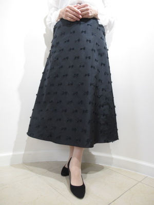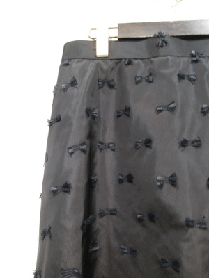 ※春物新作 フレアスカート ウエストはインベル(両脇少しギャザーゴム 後ろファスナー 同色の立体的なリボン模様をあしらった生地 裏地付き