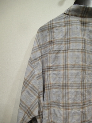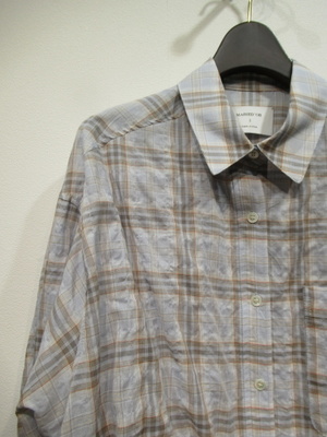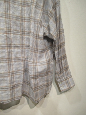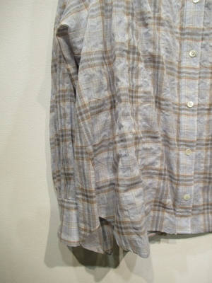 ※春物新作 チェック柄、サッカー地のように表面はややシワっぽく見えます、ドロップショルダー、裾前後差あり、袖口カフス、手洗い可能