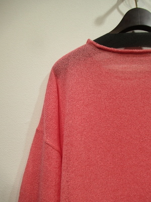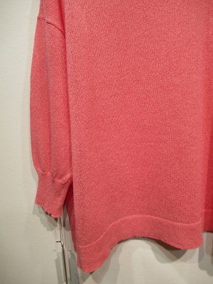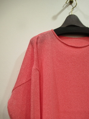 ※春物新作 和紙糸を使用した長袖ニット、手洗い可能、ドロップショルダー、袖筒は細身、身幅広め、袖口・裾リブ、脇スリットで前後差あり