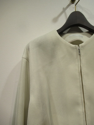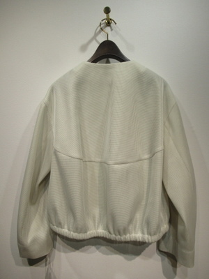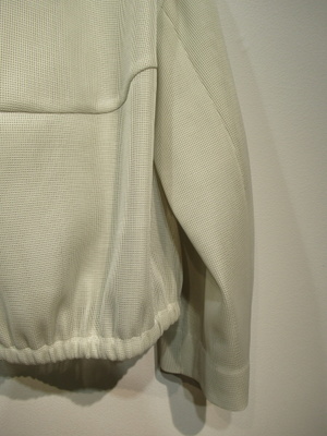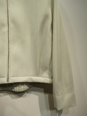 メッシュ生地のブルゾン、前後差有り、コクーンシルエット、ID:118816と同じ素材を使用していますがこちらのブルゾンのほうが身幅はすっきりとしています、裾は総ギャザーゴム、前ファスナー(シルバー)手洗い可能