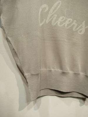 やや透け感のある繊細なポリエステル糸にシルバーラメを織り交ぜたニット コンパクトなデザイン袖は身頃から延長(フレンチ)アイボリーの糸でロゴ 袖口 裾、襟ぐりはリブ 手洗い可能