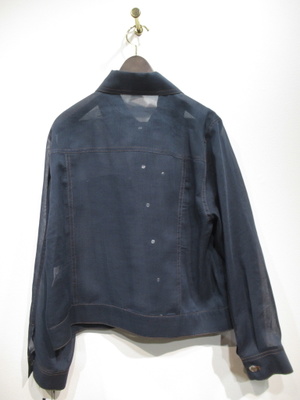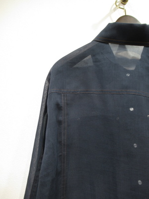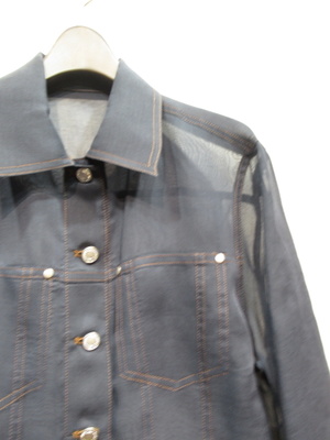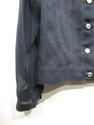 透け感のあるポリエステル生地のGジャンデザイン シルバーのボタン ステッチはベージュは茶系 ネイビーはオレンジ系 手洗い可能