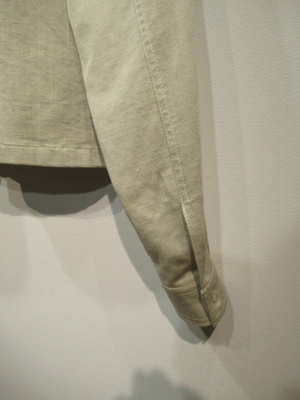 テンセル生地のジャケット風のシャツ、フロントに大きめの張りポケット、襟はステンカラー、フロントボタンはシルバー、袖口カフスもシルバーボタン、手洗い可能手洗い可能