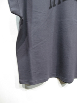 スクエアデザインのカットソー、ロゴ入り、フレンチスリーブ、白はブラウン系・チャコールは黒のロゴ文字、手洗い可能