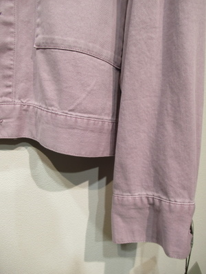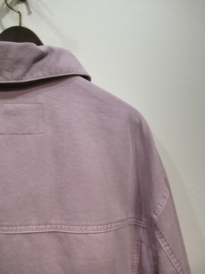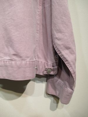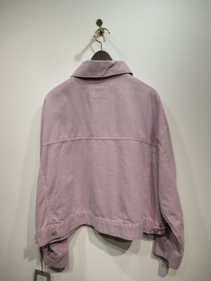 カラーデニム地のGジャン風デザイン、ボタンがシルバー、脇2タックボタン、カフスあり、手洗い可能