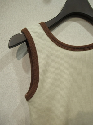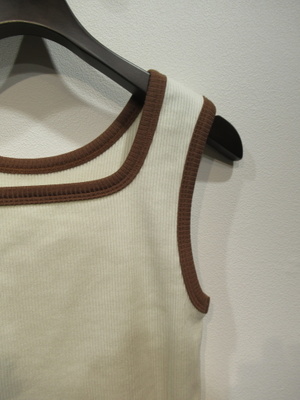 前後着用のタンクトップ(クルーネックとスクエア) テレコ素材 配色トリミング オフホワイトは茶系 ミディアムグレーはブルー 手洗い可能