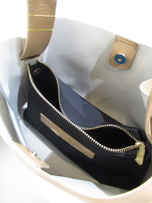 牛革シュリンクの型押し 一本手の持ち手 持ち手の長さは調整可能 インバッグは取り外しできます