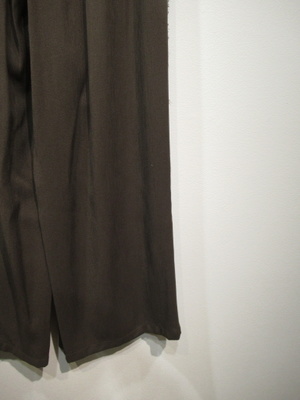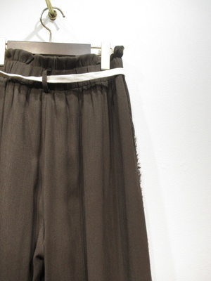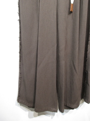 レーヨンポリの落ち感のある生地 ウエスト幅広ゴム ギャザー寄せ 脇ポケット 裏地はヒップ辺りまであります サッシュベルト付き 脇ラインはフリンジ 手洗い可能 ※アイスグリーンのみ股下66cmでやや長め