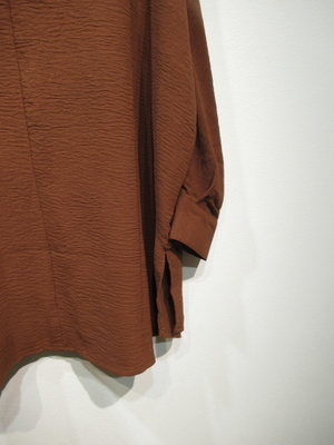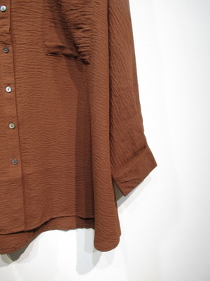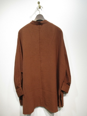 柔らかなシワ加工に生地 襟無し ざっくり大きめシャツ 裾前後差有り 脇スリット 手洗い可能