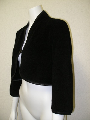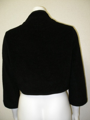パイル素材ですが、カジュアルすぎない質感のジャケット。(裏地無し)同色でサテンのトリミングが。