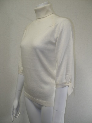 レーヨンナイロンのタートルニット 袖付けのタック寄せがキュート