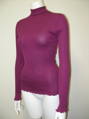 コットン80%、シルク20%のリブニット。柔らかく伸縮性があります。