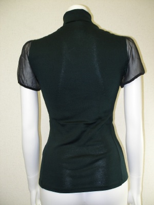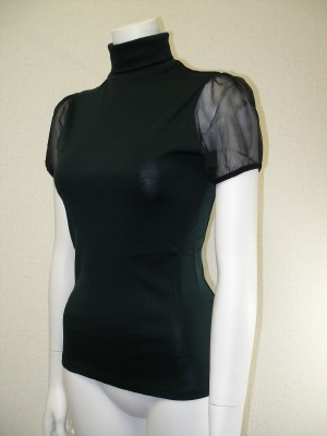 コットン×シルクで着心地の良いカットソー。お袖はポリエステルシフォンでシースルーです。