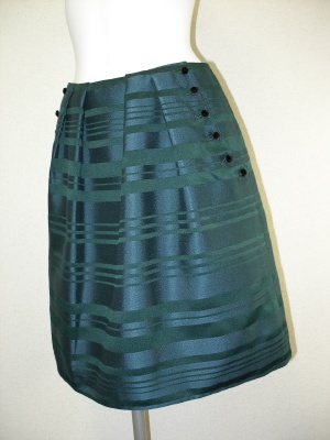 やや光沢がある素材(ポリエステル、レーヨン)ポケットにはベロアのクルミボタン。裏地付き。丈48cm。